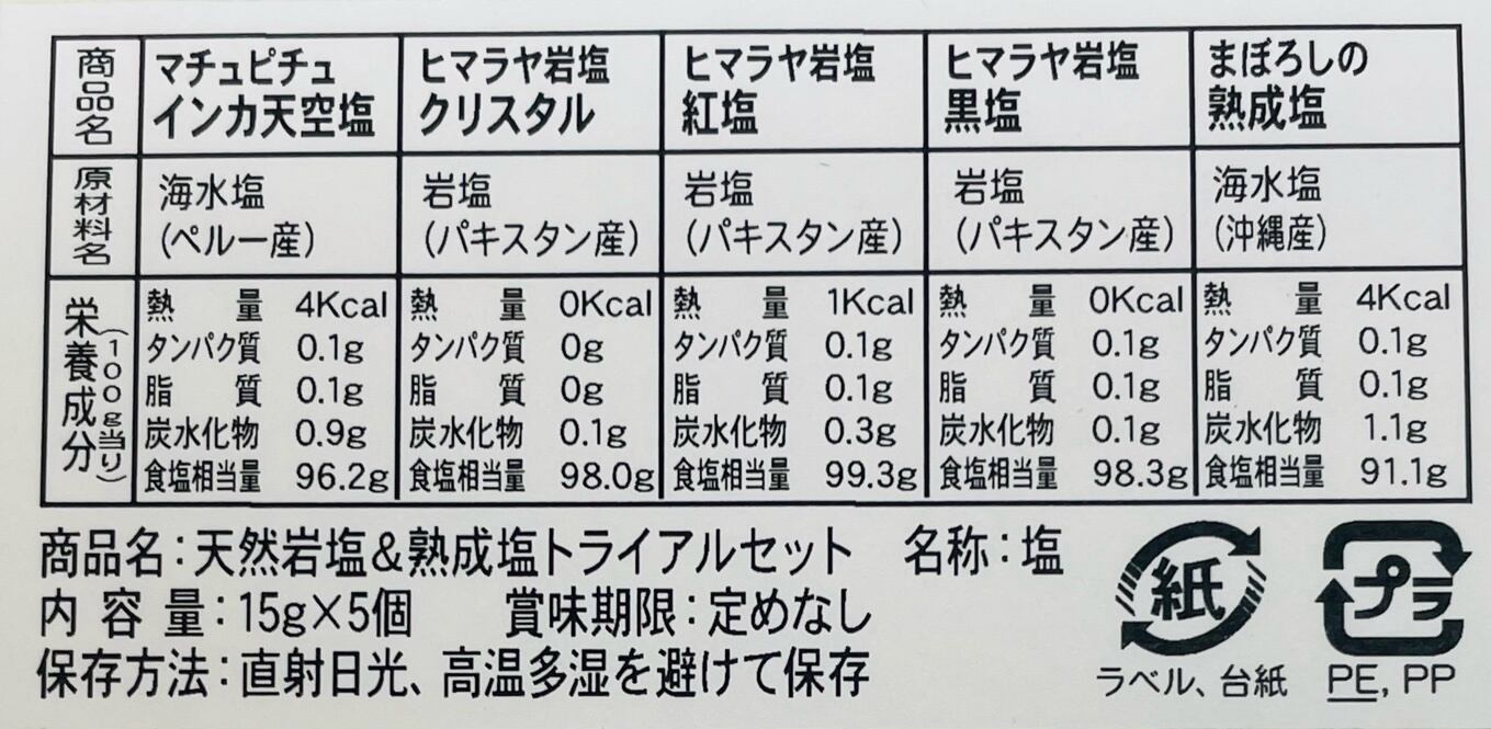 【梅天神オリジナル】世界の岩塩+熟成塩(天日塩)トライアルセット