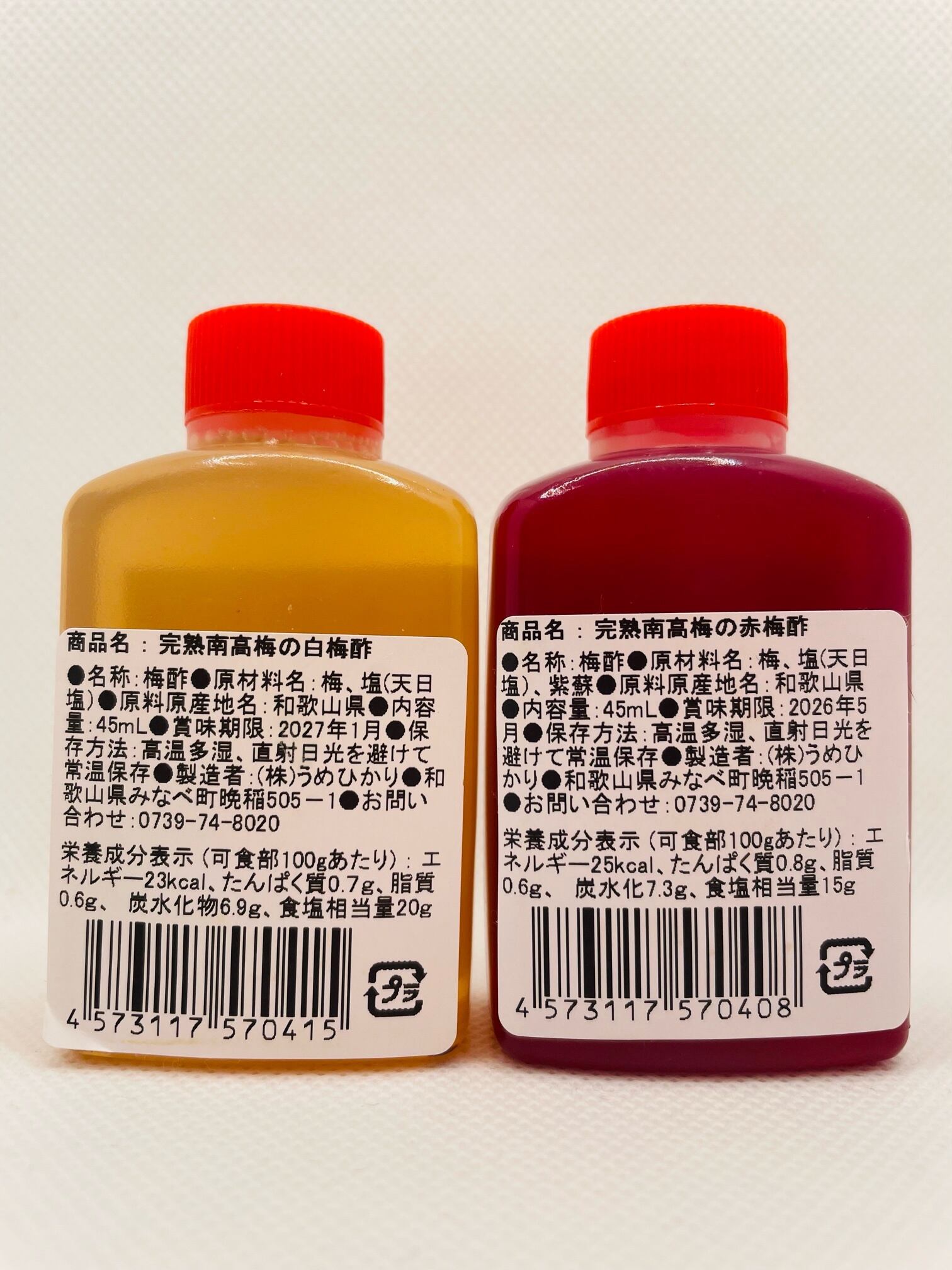 そんな梅酢を、通常サイズ赤梅酢と、お試ししやすい45mlサイズ2個でお届けします♪