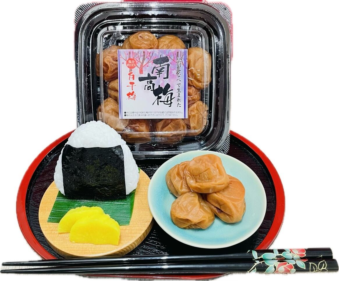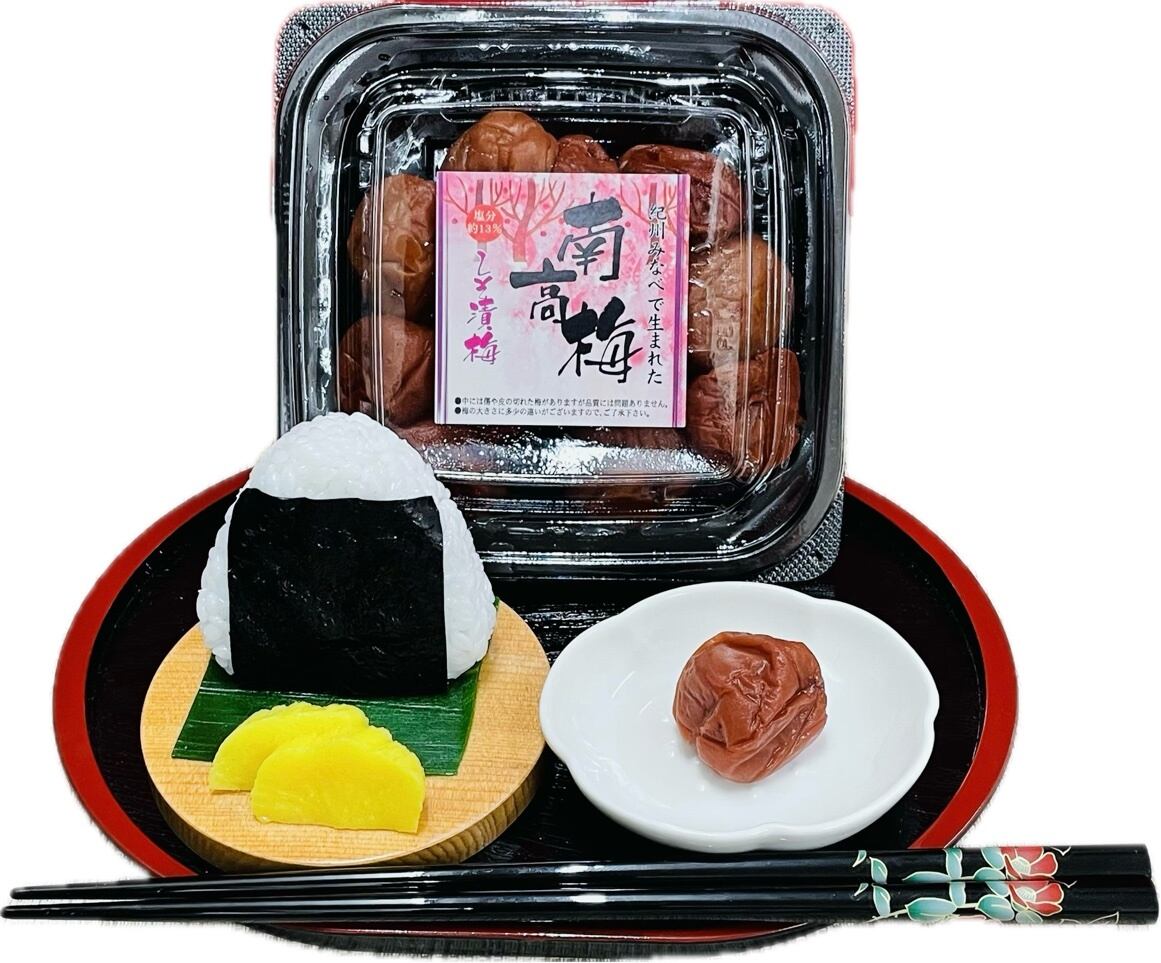 和歌山県産の紀州みなべ南高梅を使用。完熟した南高梅を粗漬けしたあと、秘伝の調味法によりじっくりと熟成させた梅干しです。美味しさがあとをひく、奥深い味わいを是非ご堪能下さい。