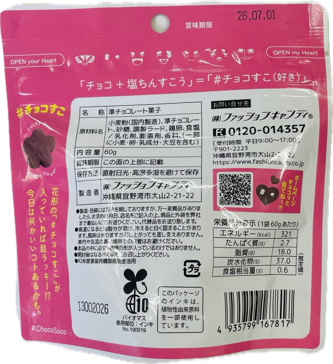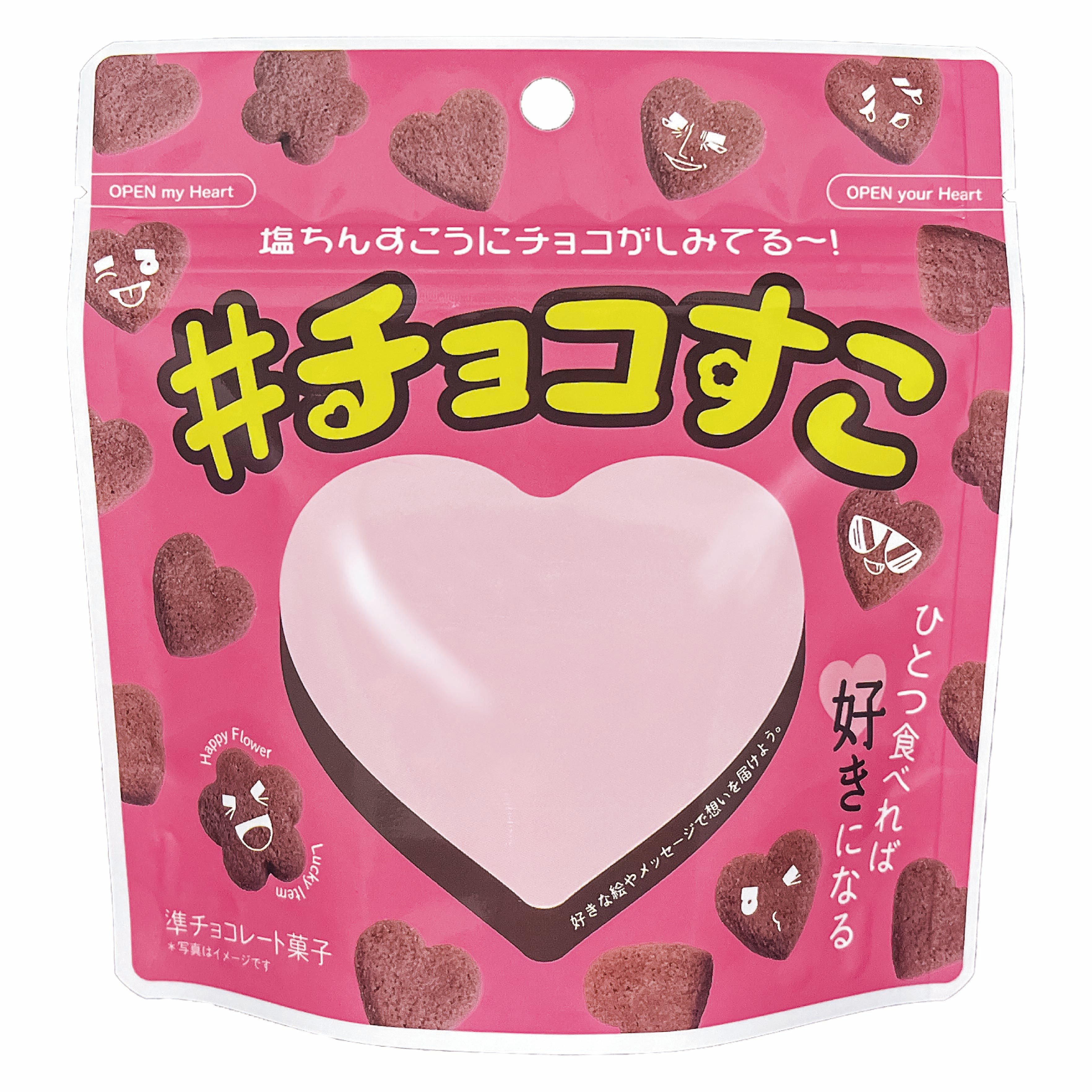 ハートと花のかわいい一口サイズ!さっくり、しっとりとした新食感で、チョコの甘さと塩味がほどよく、クセになるお菓子です。