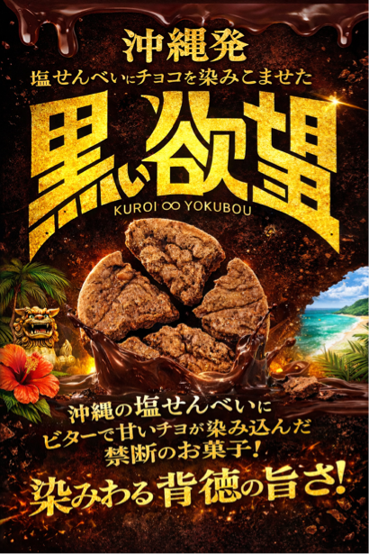 そんな沖縄県民の欲望を叶えるため塩せんべいにチョコをたっぷり染み込ませた「黒い欲望」がここに完成しました!