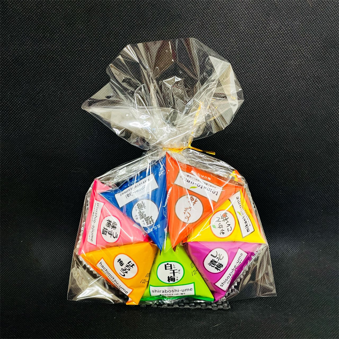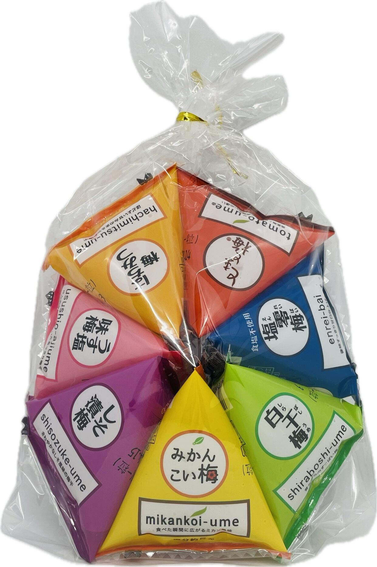 テトラ全7種のバラエティ豊かなラインナップで、一番人気の「とまと」や、「塩零塩」「みかん」「はちみつ」「白干し」「うす塩」「しそ」の7種が楽しめます。